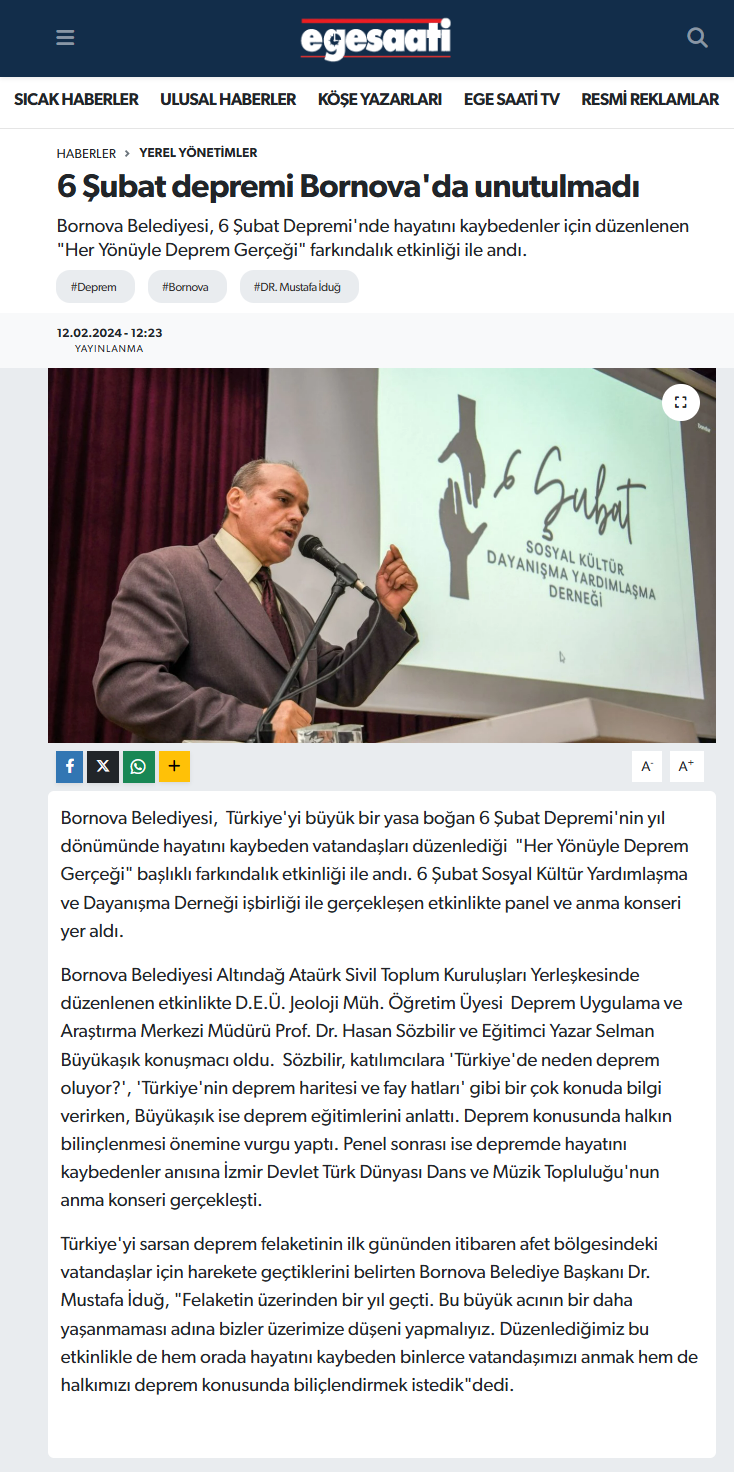 Basında 6 Şubat Sosyal Kültür Dayanışma Yardımlaşma Derneği
